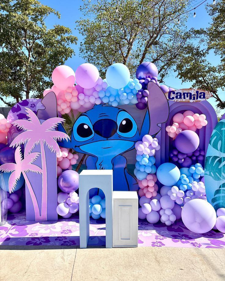 یکی از مهمترین بخشهای دکور تم شخصیت استیچ، میز دسر است که توجه همه مهمانان را جلب میکند. ترکیب رنگی میز باید با بادکنکها و بکدراپ هماهنگ باشد.